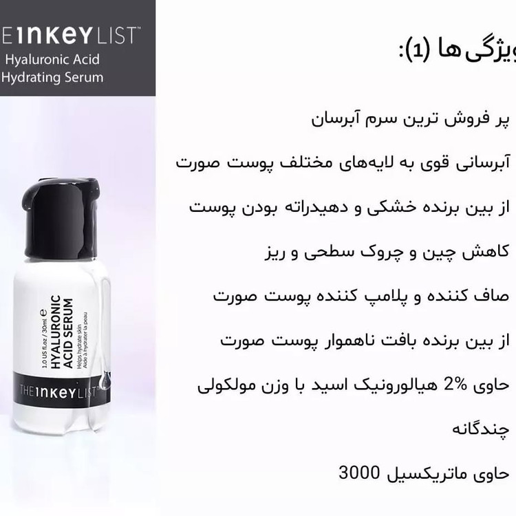 The Inkey List Hyaluronic Asid Serum سرم آبرسان هیالورونیک اسید اینکی لیست انگلیس. حجم محصول پرفروش ترین سرم آبرسان2022 رفع دهیدراتگی پوست. آبرسانی عمیق تمام لایه های پوست. حاوی ماتریکسیل و افزایش کلاژن سازی. کاهش چین و چروک ریز صورت. پرفروش ترین محصول اینکی لیست برنده جایزه الوور سال۲۰۲۲ بعنوان بهترین سرم هیالورونیک اسید دنیا. لیست#آبرسان#آبرسانی پوست هیالورونیک اسید#خرید انگلیس