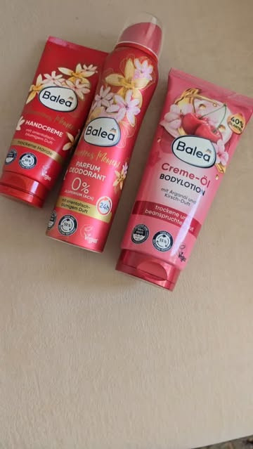 وقتی قراره کل تابستون بوی خوب بدی، به سبک محبوب ترین عطرهای دنیا سه محصول مراقبت از پوست و بدن از برند Balea 1. Balea Handcreme Glamorous Moments نوع: کرم دست رایحه: رایحه گلهای شرقی (orientalischblumiger Duft) مناسب برای: دستهای خشک ویژگیها: وگان (Vegan) ترکیبات: آبرسانی. گلیسیرین، شی باتر،روغن نارگیل E پانتنول. 2. Balea Parfum Deodorant Glamorous Moments نوع: دئودورانت با رایحه عطر رایحه: رایحه گلهای شرقی (orientalischblumiger Duft) ویژگیها: بدون آلومینیوم (0% Aluminium) ماندگاری 24 ساعته، وگان ضد عفونی کننده و کمک به خشک شدن سریع، رایحه گلهای شرقی. ضد باکتری طبیعی، نرم کننده 3. Balea CremeÖl Bodylotion نوع: لوسیون بدن کرمیروغنی ترکیبات: روغن آرگان و رایحه گیلاس (KirschDuft) ۴۰٪ترکیبات از روغن های طبیعی. مناسب برای: پوست خشک و آسیبدیده (trockene und beanspruchte Haut) محصول:آلمان خرید: مستقیم از فروشگاهdmآلمان آ#بوی_خوب#مراقبت_پوست_بدن# #خرید_مستقیم#